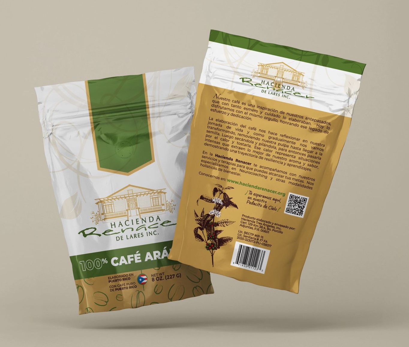 Disponible molido o en grano en empaques de 8oz @ $16.00 cu